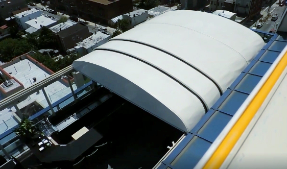 开合屋盖通常由一系列可移动的屋顶板块组成,这些板块可以通过机械装置(如电动马达、液压系统等)来控制开启和关闭。当屋盖关闭时,可以提供遮风避雨、保暖隔热的功能,适用于各种恶劣天气条件;而当屋盖打开时,可以让室内空间与室外环境融为一体,增加自然光线和通风,适用于户外活动和休闲场合。